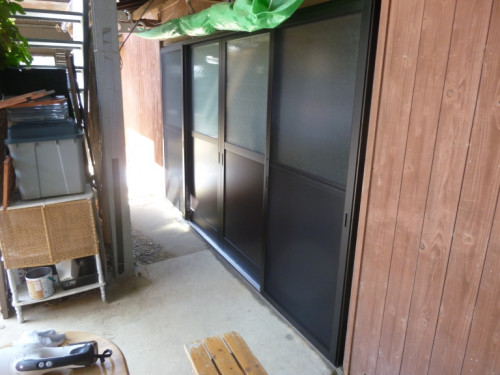 田原市で倉庫入口の土間引戸を枠ごと交換リフォーム!開閉スムーズで見栄えも改善