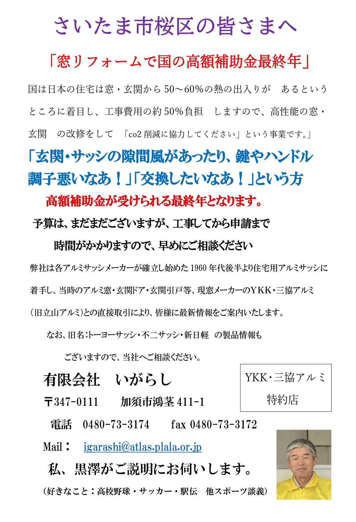 さいたま市桜区の皆さま、窓・玄関リフォームで最大50%補助!💰高額補助金【最終年】チャンスです!💨