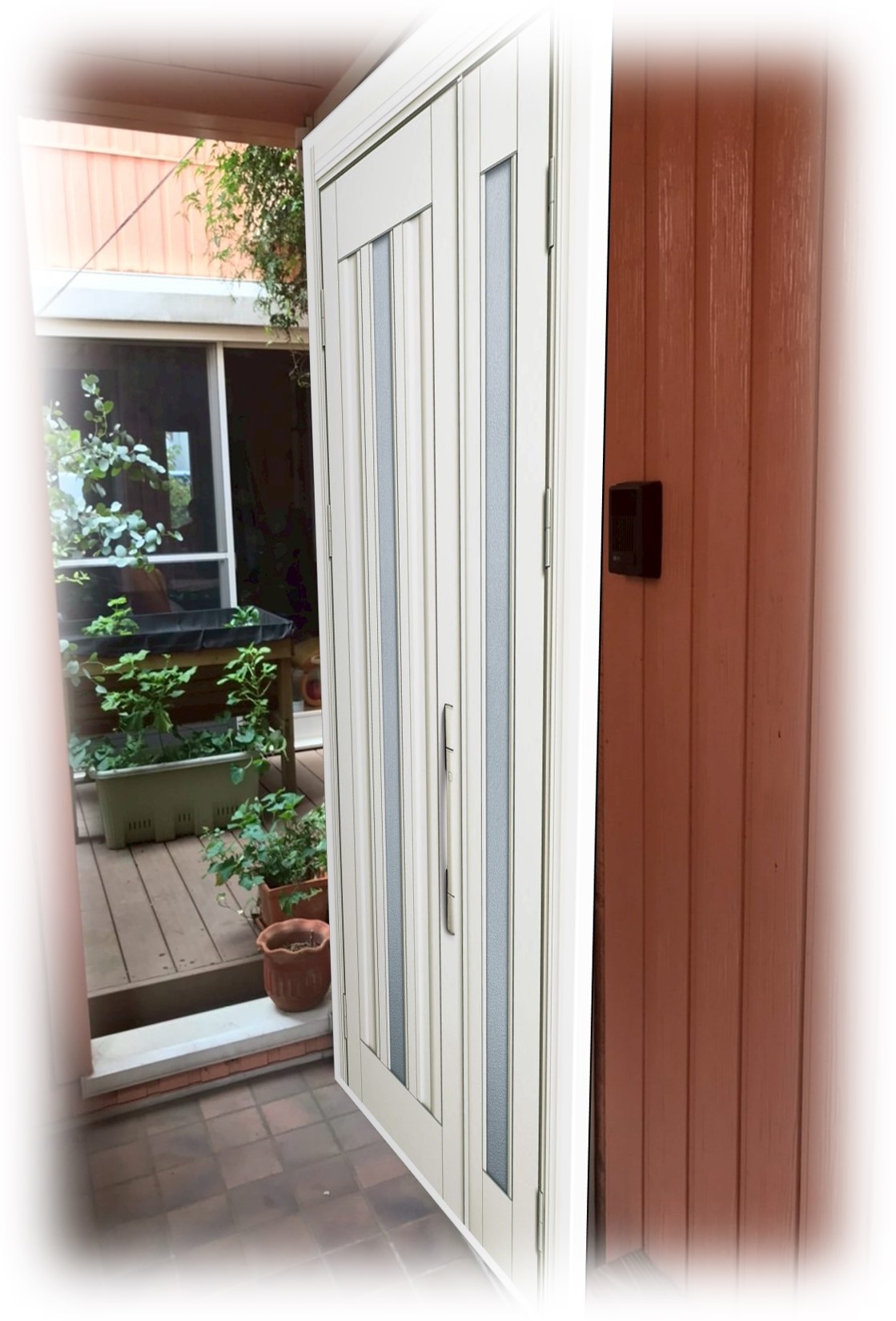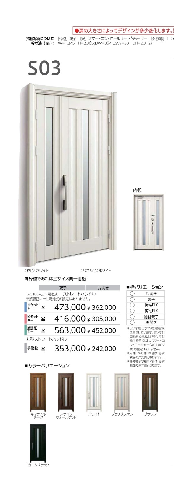 そこで、お客さまは「一層のこと、最新の玄関に!」とご決断。ご自宅の雰囲気を大切にしつつ、リーズナブルで高級感を感じさせるものを選ばれました。お客さまのセンスが光る選択ですよ!😍 具体的には、YKKAPのドアリモアルミ玄関D30シリーズ S03(美しいホワイトカラー、親子玄関)をピックアップ。ポケットキーのスマートキー機能で、毎日の生活が「楽楽」になることをイメージされたそうです。鍵の心配がなくなると、家族みんなの笑顔が増えそうですね。👨👩👧👦