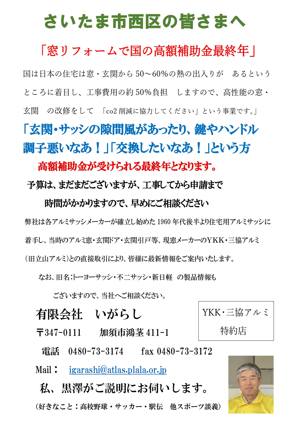 さいたま市西区の皆様へ緊急告知‼️ 窓・玄関リフォームで国が工事費の約50%を負担✨ 補助金最終年「先進的窓リノベ2025事業」締切迫る