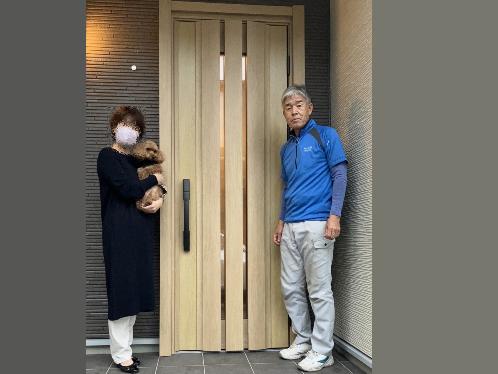 • 工事後に当店スタッフと一緒に写真撮。自社ホームページへの掲載で3,000円のQUOカードをプレゼント。