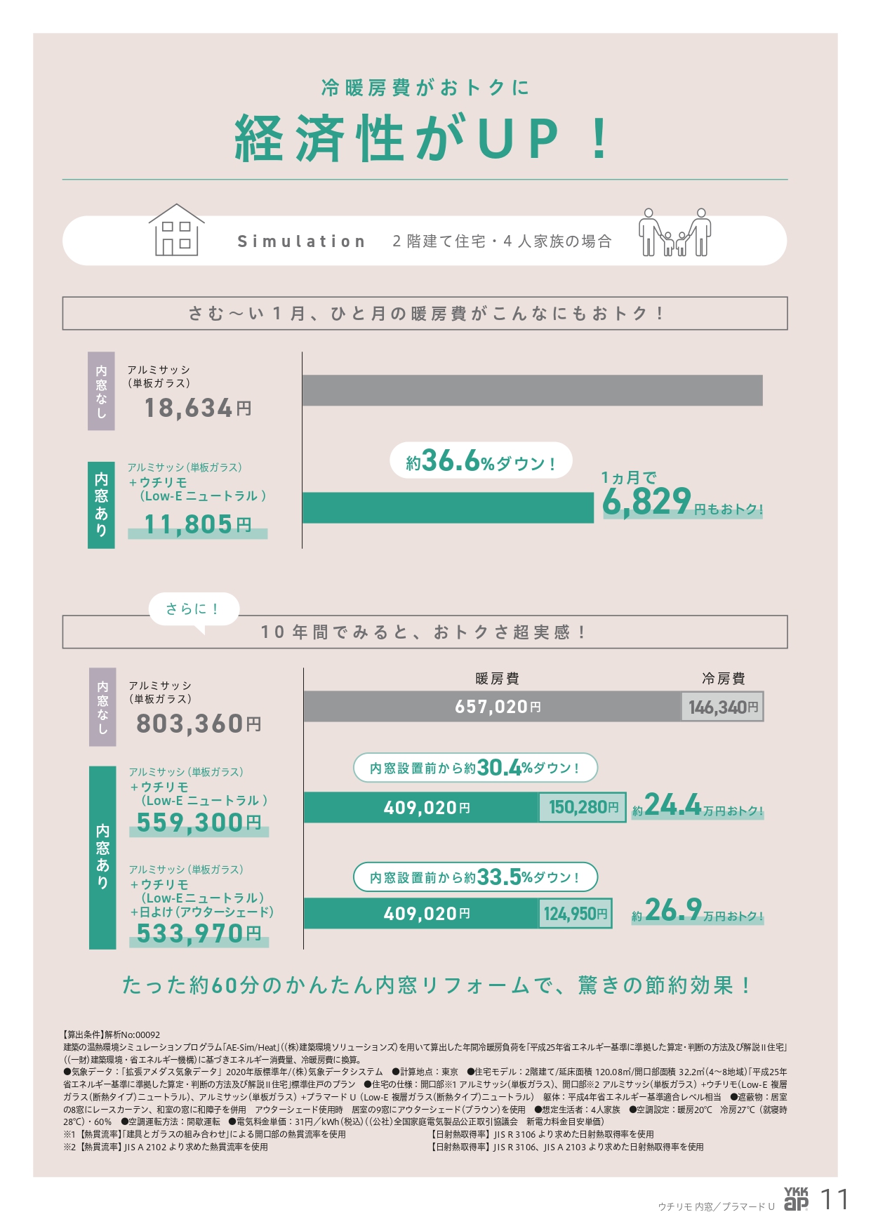 例: 従来の窓からYKK APの内窓設置・玄関ドアからYKK APの断熱玄関ドアに変えるだけで、暖房効率が向上し、 月々の光熱費を抑えられるかも!💡💰