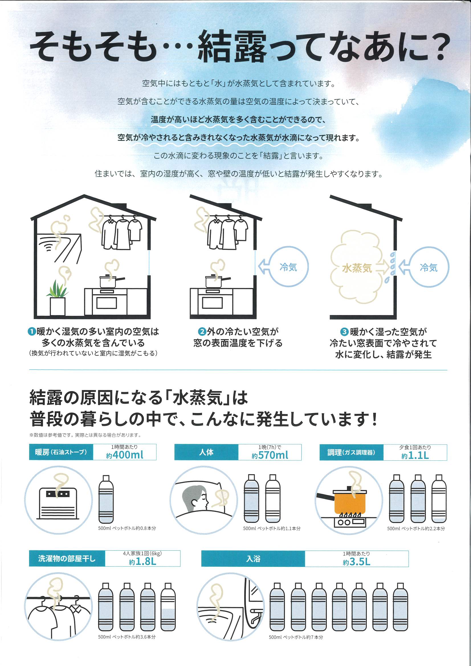 この流れで、室内全体の湿気バランスが崩れ、結露が発生しやすい状態になってしまいます。