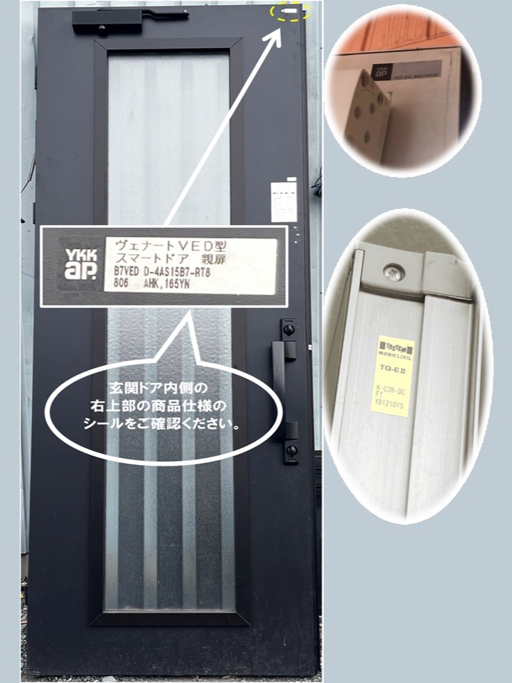 お客様の既存の玄関ドアは、メーカーや型番などの情報が記載されたシールが貼られています。