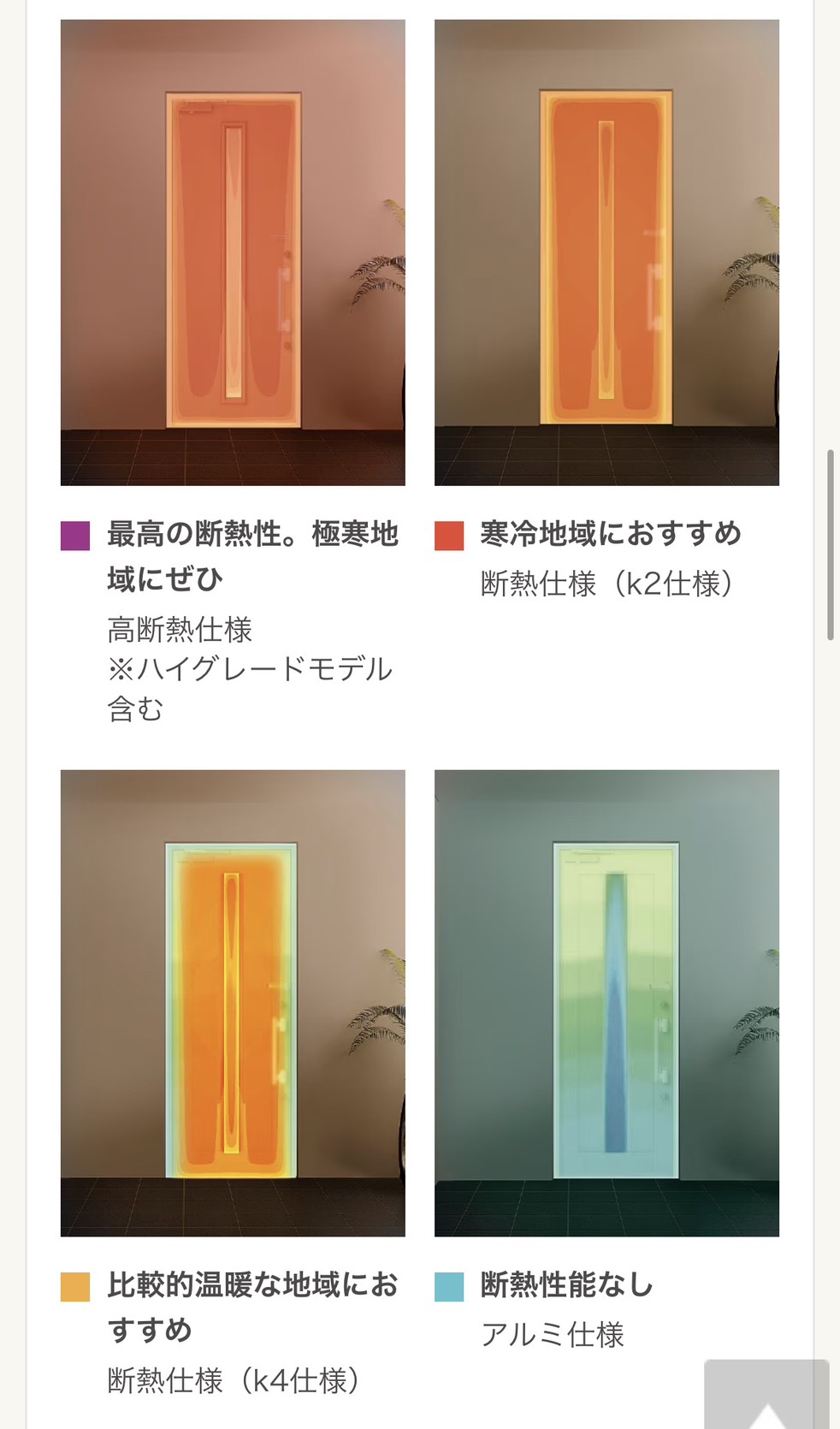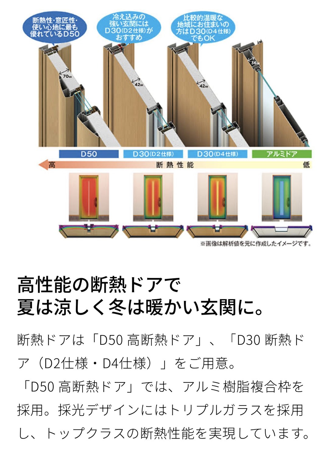 YKKAPの断熱ドアは D2仕様 または D4仕様 をお選びください。
