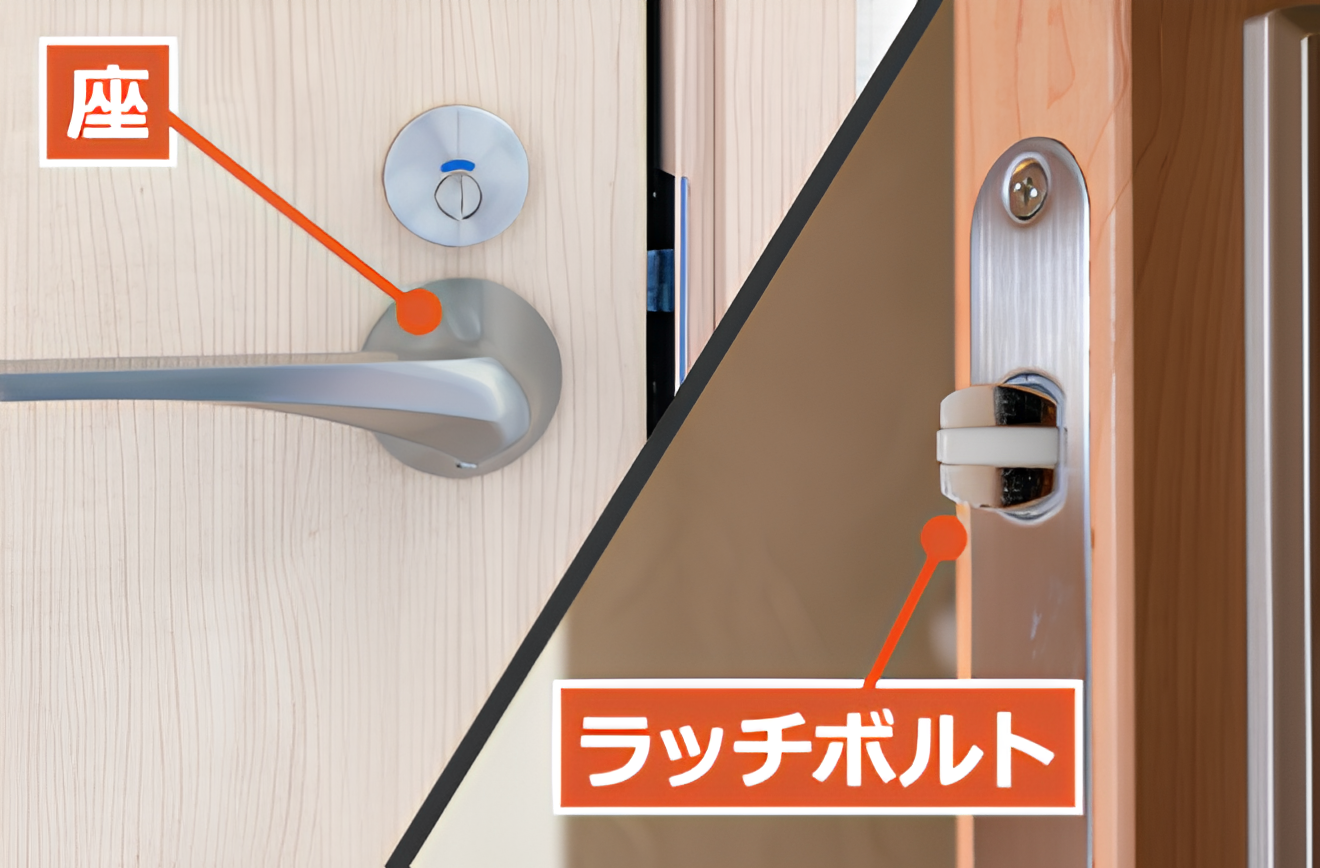 ドアノブの「座(台座)」 または「ラッチ(ラッチボルト)」の緩みが原因である可能性があります。