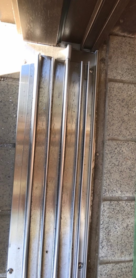 現場へ駆けつけてみると、長年愛用されてきた引戸のゴムパッキンがカチカチに硬くなってボロボロに…! 経年劣化によってクッションの役割を果たせなくなり、アルミ同士が直接ぶつかってしまっていたのです。⚡️