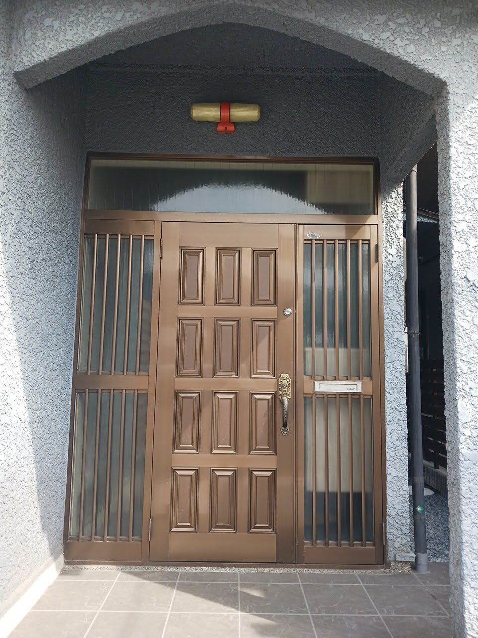 豊中市 袖付きランマ付きの大きな玄関をYKKAPドアリモ玄関ドアでお取替え!