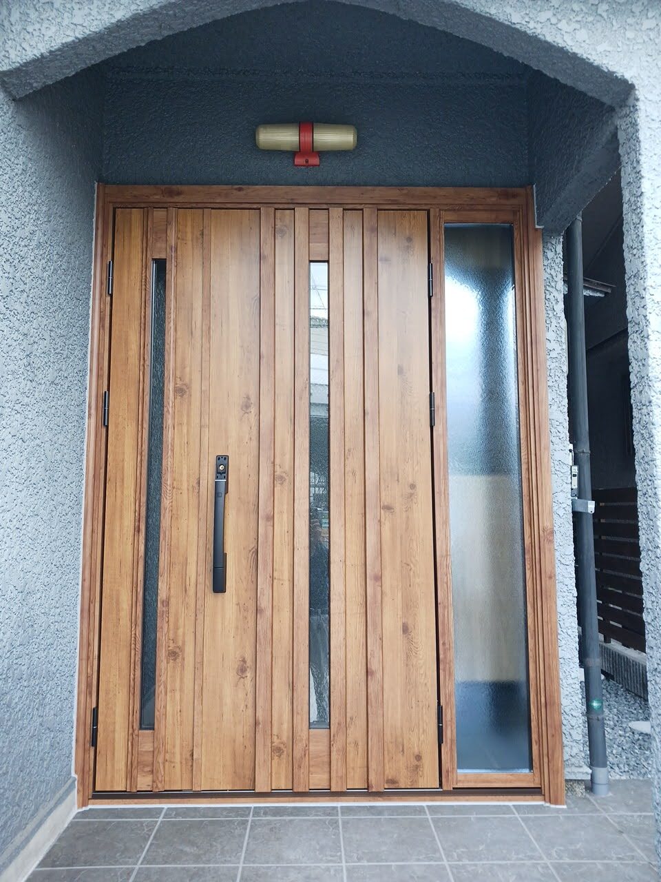 加須市の皆さま、🏠 玄関ドア交換で家をアップデート!スマートキー(電気錠)へのリフォームで快適&安心に!🔑YKK AP ドアリモ C05N 木目調