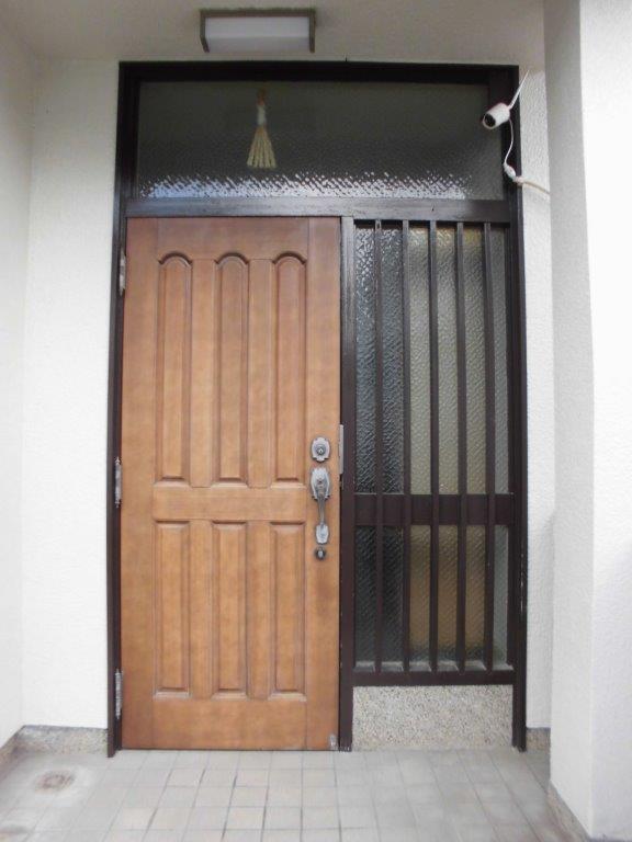 今回の工事ポイントはガラス仕様の玄関引戸ドアのため、とくにガラスに傷がつかないよう作業した事になります。