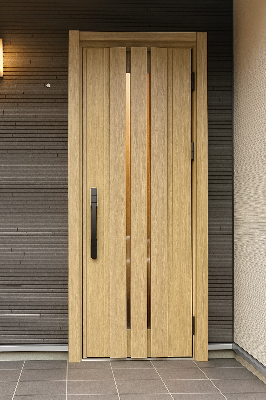 ✅ シックな木目調で味わい深く断熱性能もバッチリ!冬も暖かく、夏は涼しい、快適な玄関空間へグレードアップ!
