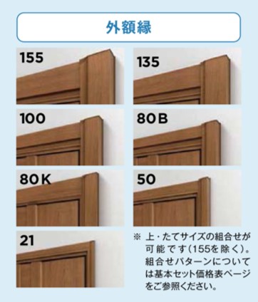 玄関の額縁もその時にカバーしていきますが、さまざまな玄関に対応できるように額縁のサイズも取り揃えています。