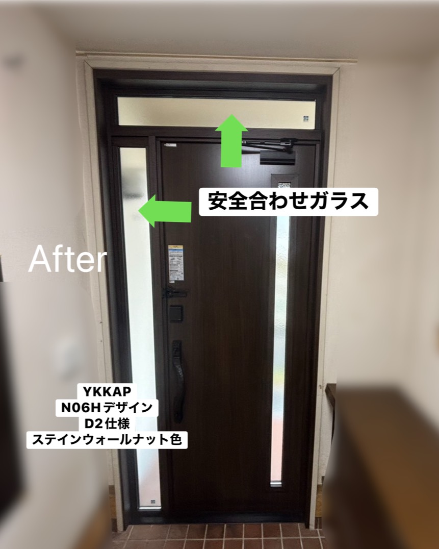 お客様は、防犯性と防災性の向上を重視され、玄関ドアリフォームをご検討されていました。