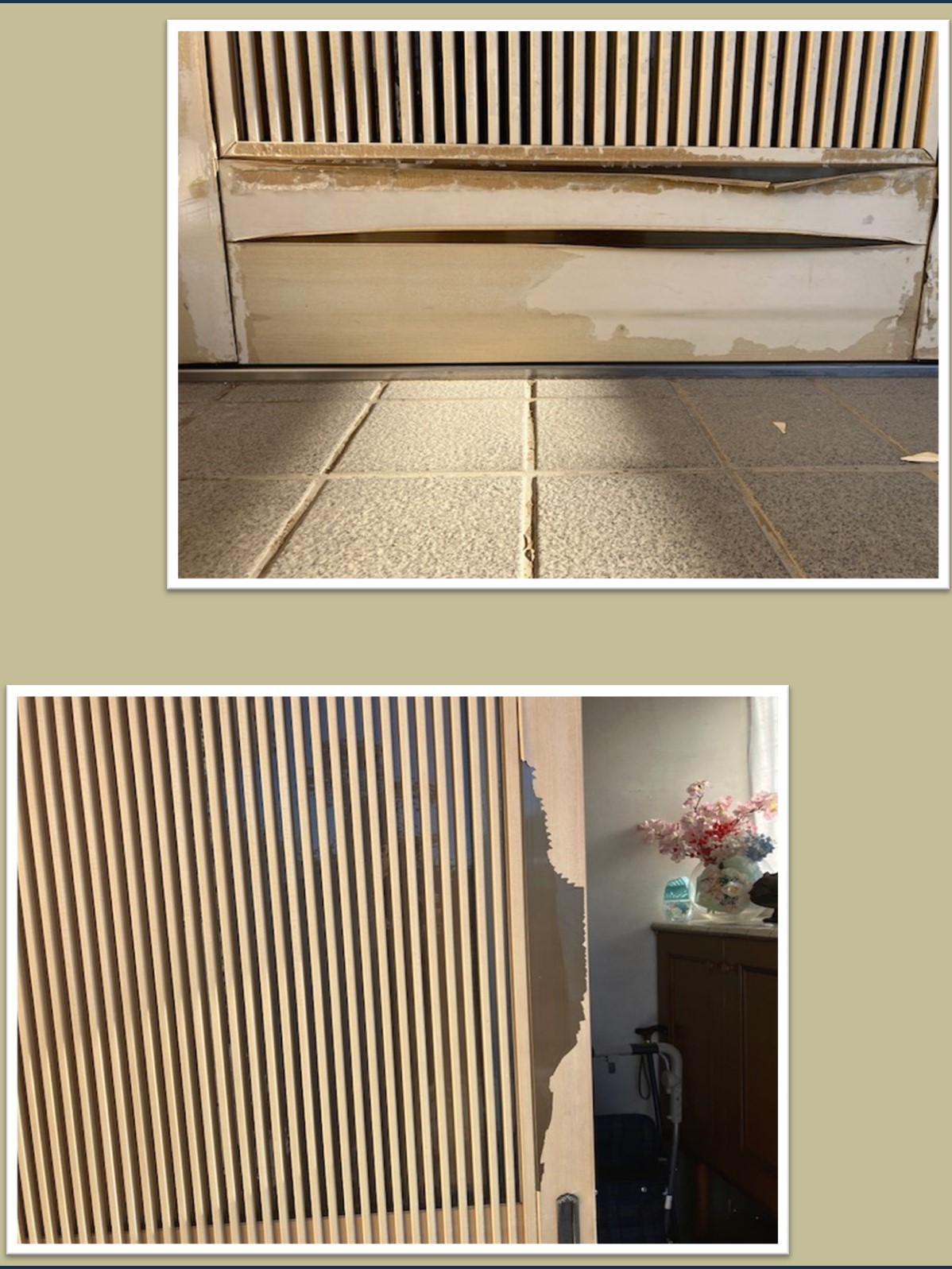 長年、ご家族を迎え入れてきた木目調の玄関引戸ですが、**「直射日光」の影響で表面のシートが大きく破れてしまっていました。また、ゴムパッキンの劣化による「隙間風」**もお悩みのご様子でした。