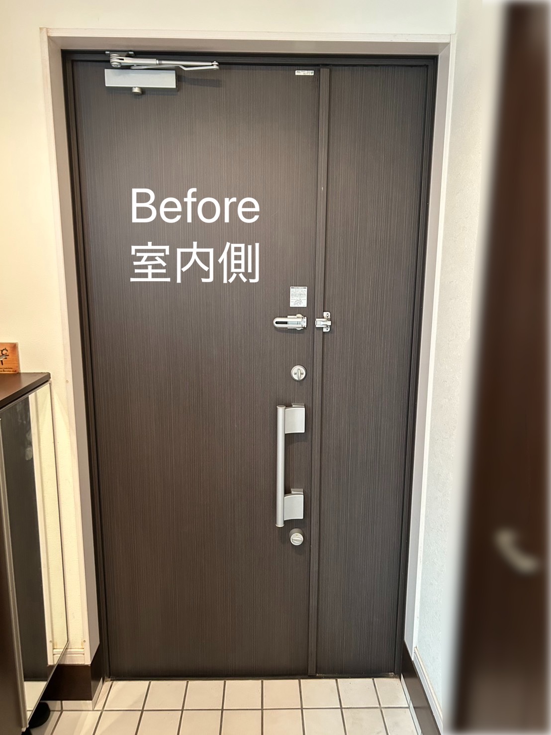 お客様は、長年の直射日光による日焼けと劣化にお悩みで、玄関まわりの印象を変えたいとの思いから、当店のホームページをご覧いただきお問い合わせくださいました。