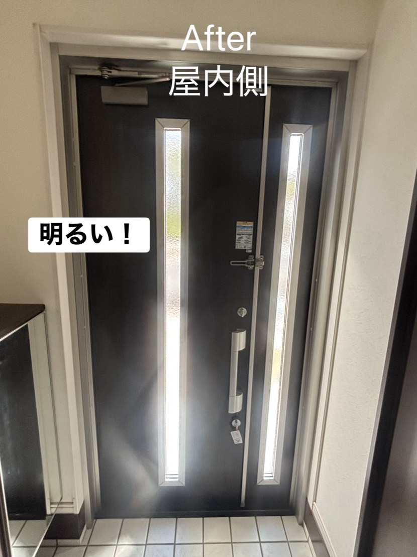 リフォーム後は「採光ドアのおかげで玄関がとても明るくなった」と大変喜んでいただきました。