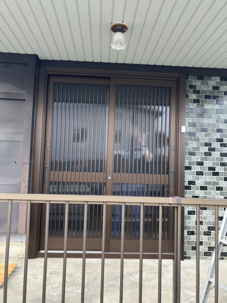 新城市にて、玄関引戸の網戸破損をきっかけに、玄関まわりをカバー工法でリフォームしました。
