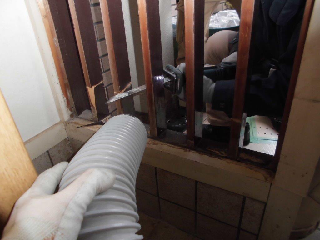 方立、無目も同じように切断し袖部腰壁部はハツリ機を使用し取り除いていきます。