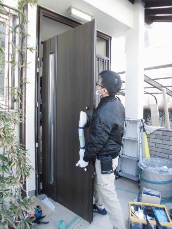 吹田市 古くなったドアをYKKAP製ドアリモ玄関ドアにて1DAYリフォーム!